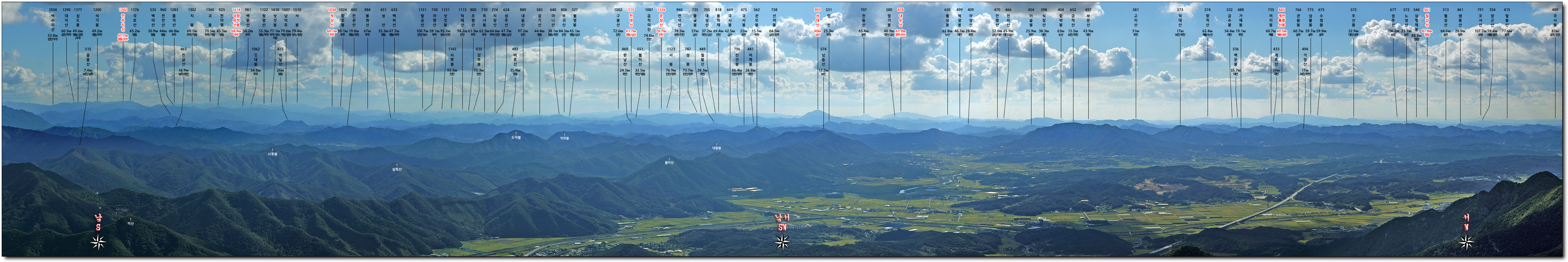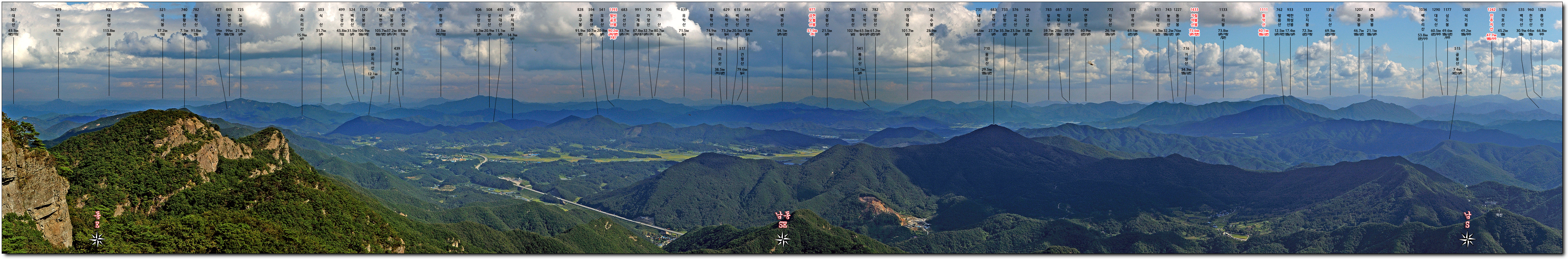 # 구병산 정상에서 볼 수 있었던 방향별 최장거리 위치의 산 (원본 클릭)