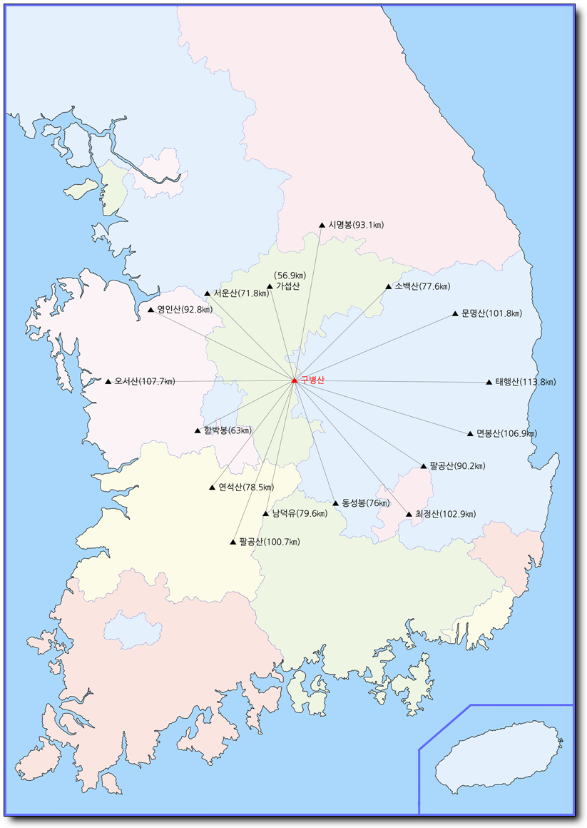 - 붉은색 표기는 '산림청 선정 100대 명산'입니다.