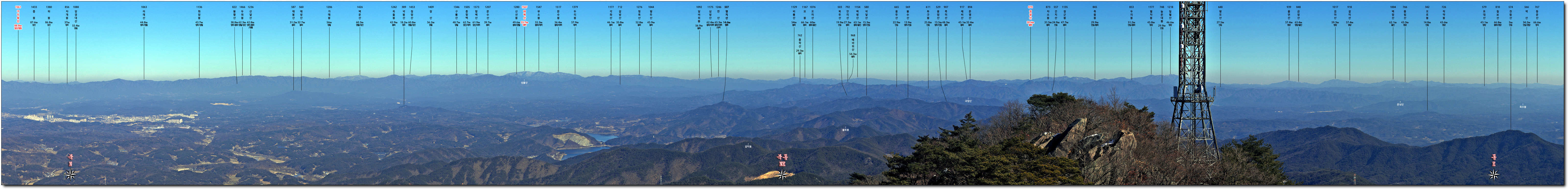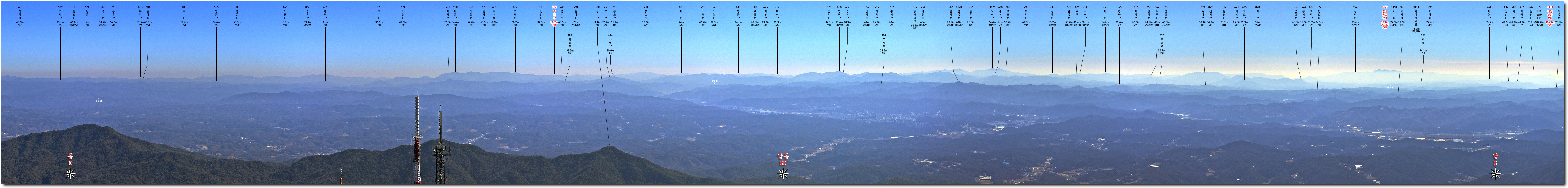 명산이 잘 보이질 않는 서쪽 극히 일부 방향은 2016년 촬영한 사진을 활용하였음.