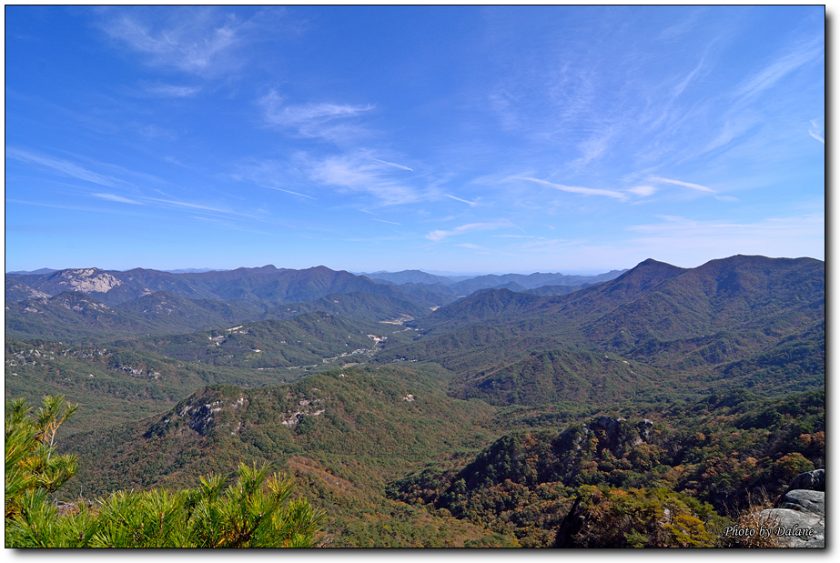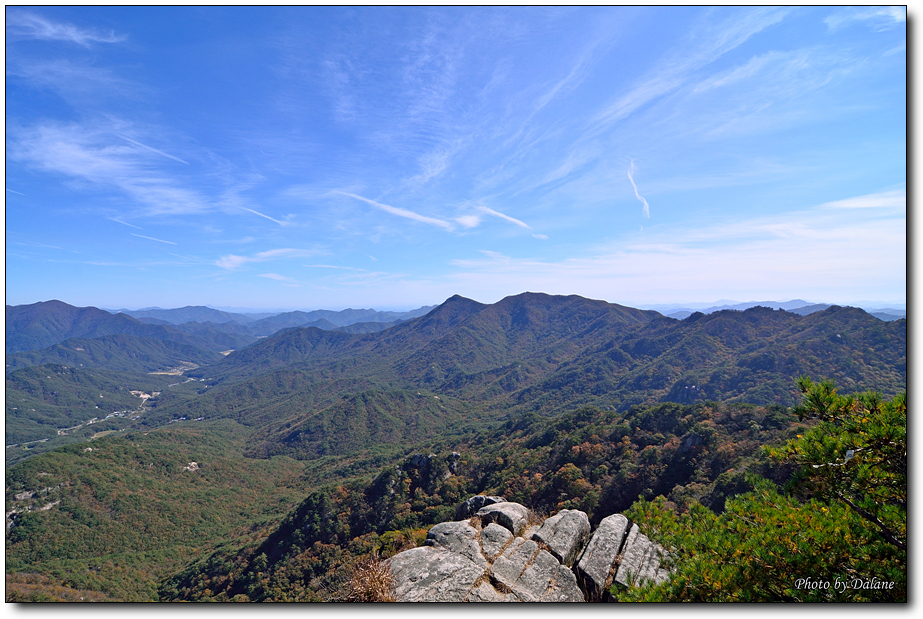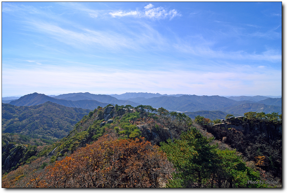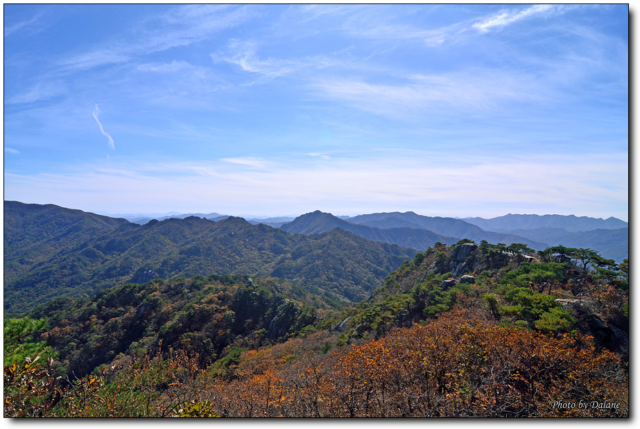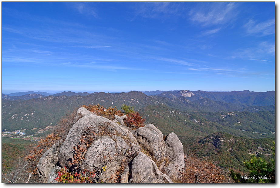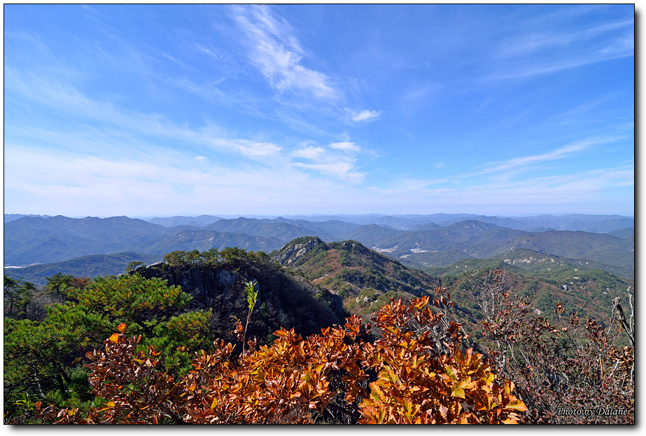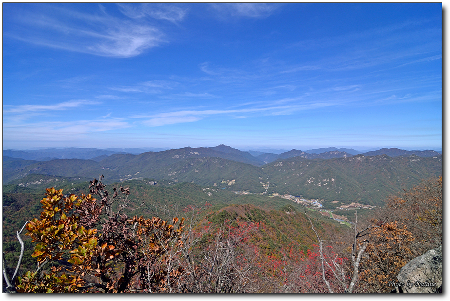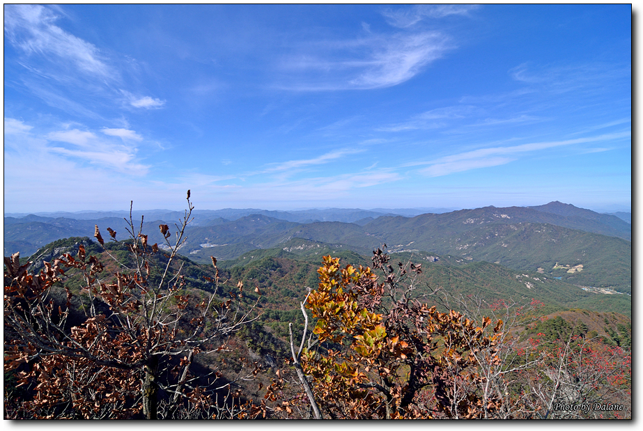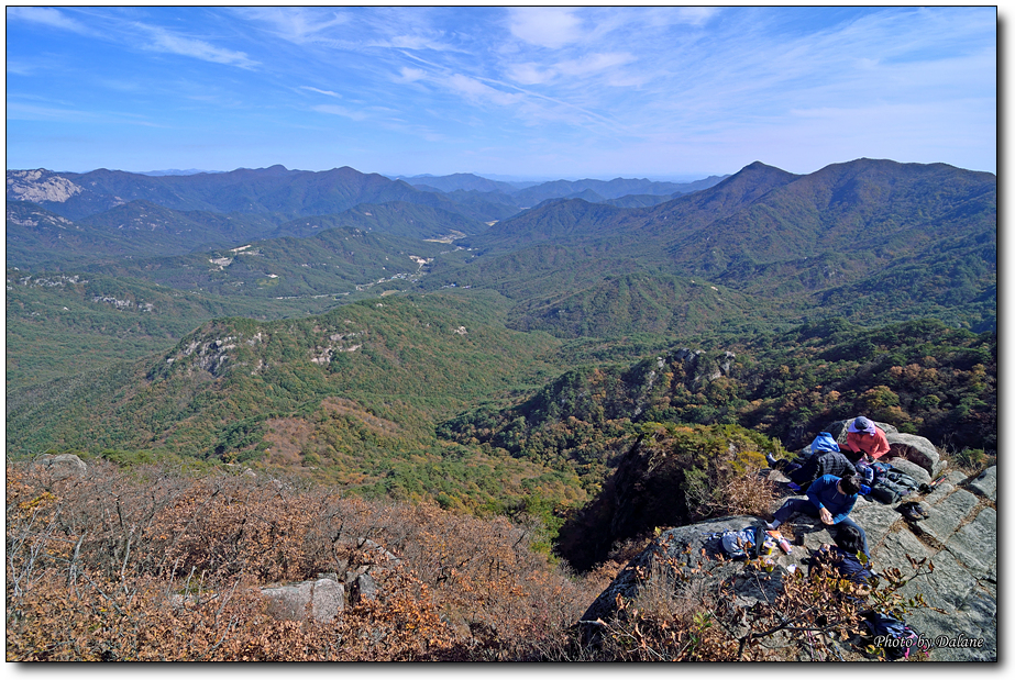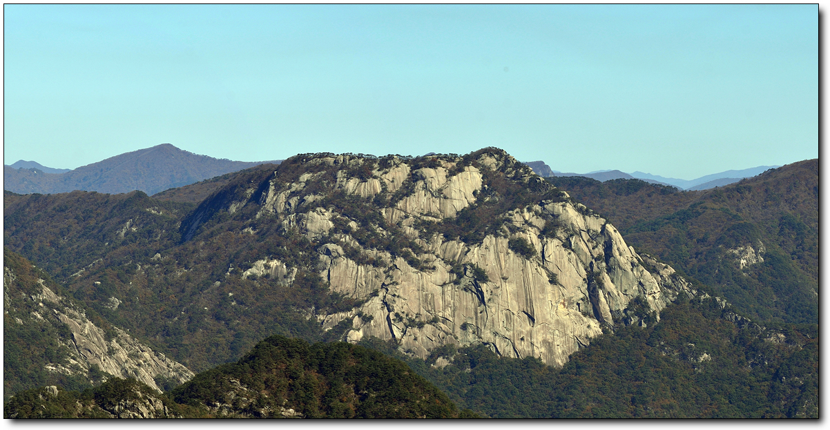 간만에 쾌청한 날씨의 축복하에 오른 대야산 정상에서 망원렌즈 사용하며 조망을 즐기고 있는데 산을 전세 낸 듯 시끌벅적한