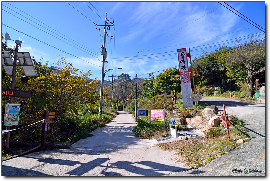 # 6. 돌마당식당 입구에 도착하게 됩니다. 조금 전 이곳까지 차로 들어왔다가 주차공간이 없어 돌아 나왔던 것이죠.