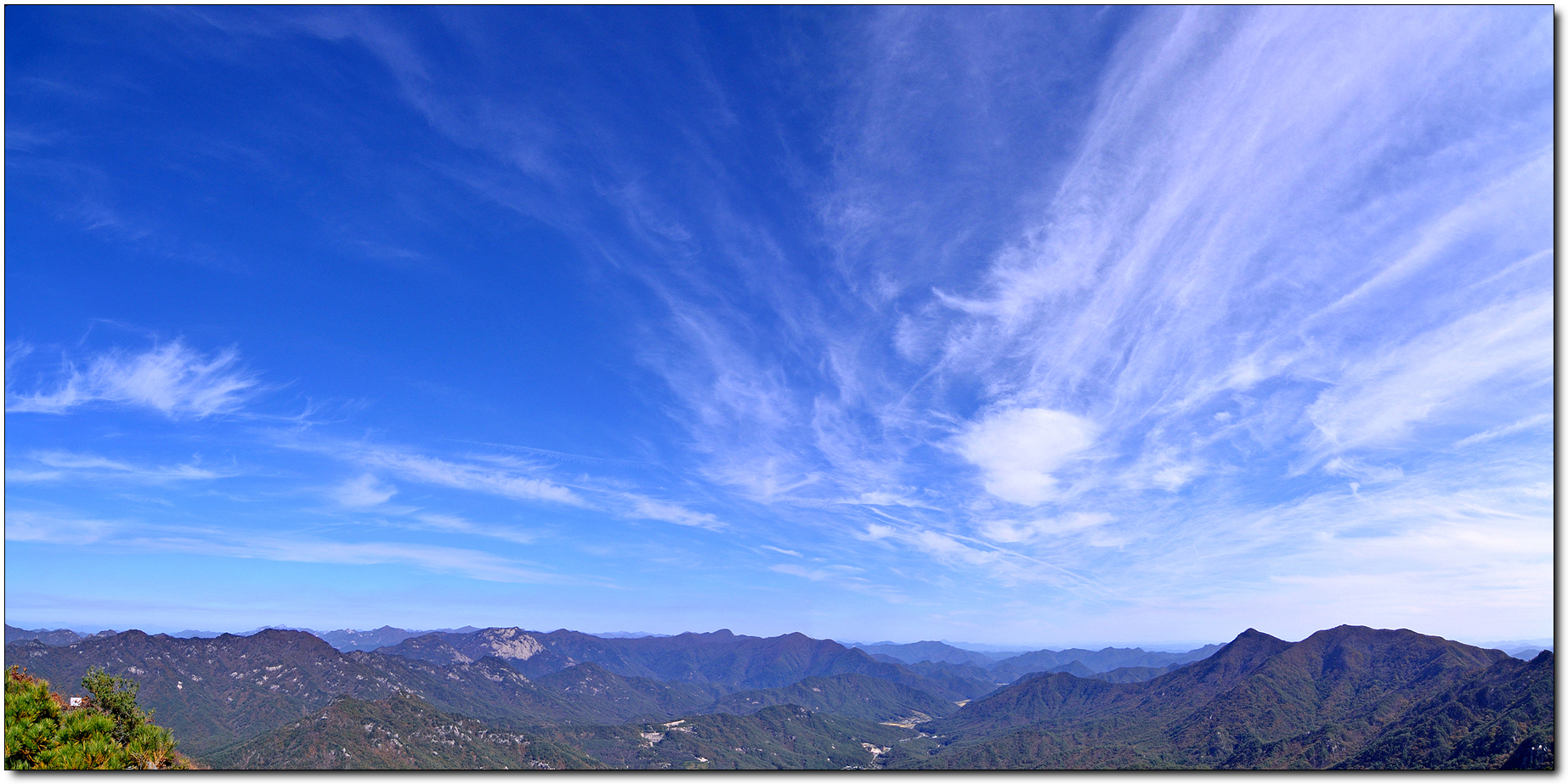 남쪽 방향입니다. 조항산 좌측 뒤로 상주, 김천, 성주의 여러 봉우리들이 보이고, 청화산 우측 뒤로 멀리 덕유산 향적봉,