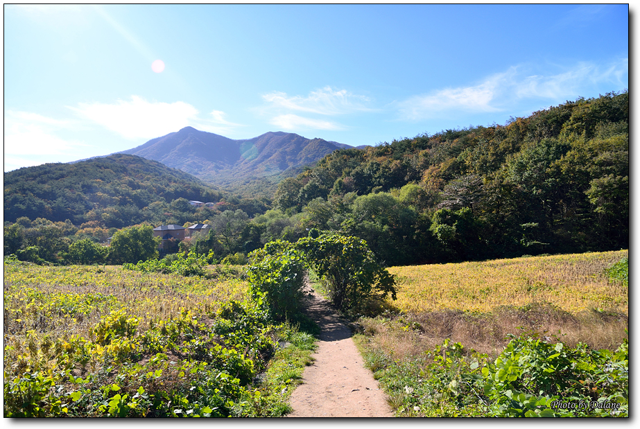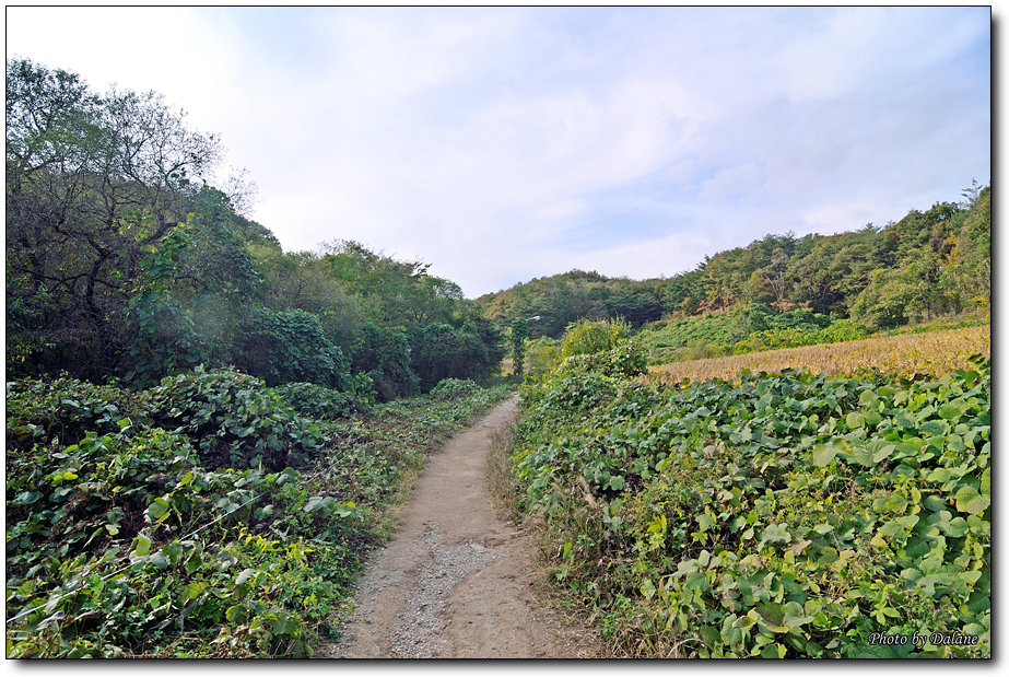 # 5. 주차장을 출발, 능선을 넘어 밭 가운데로 이어지는 오솔길을 따라 내려가면...