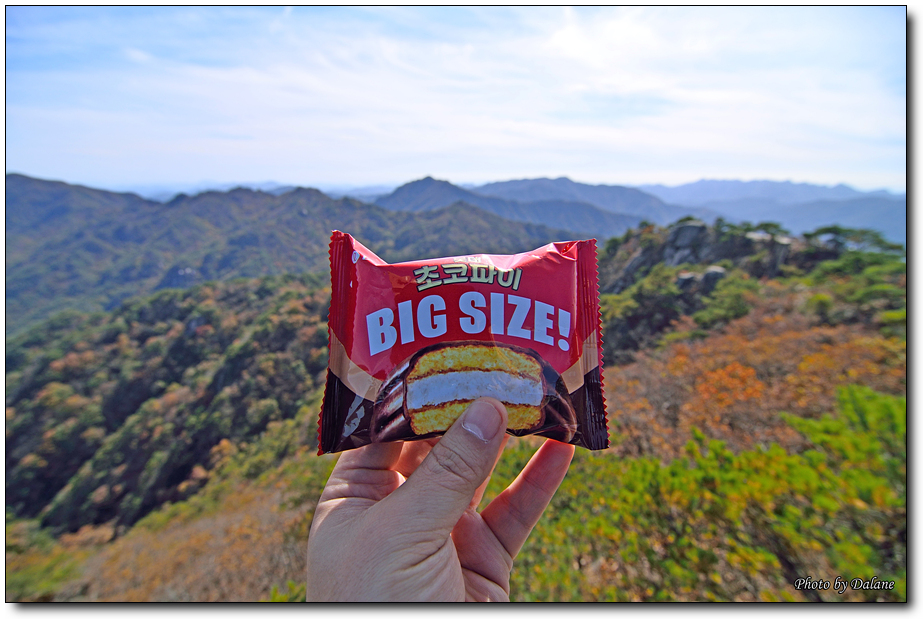 # 63. 봉변을 가한 산객들 단체사진 찍어주고 답례로 받은 초코파이.... 맛나게 먹었음.