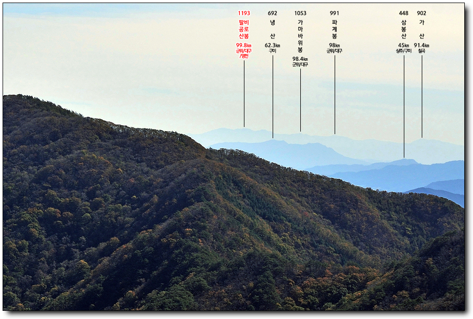 # 44. 달구벌 명산 팔공산 능선의 주요 봉우리들이 보입니다.