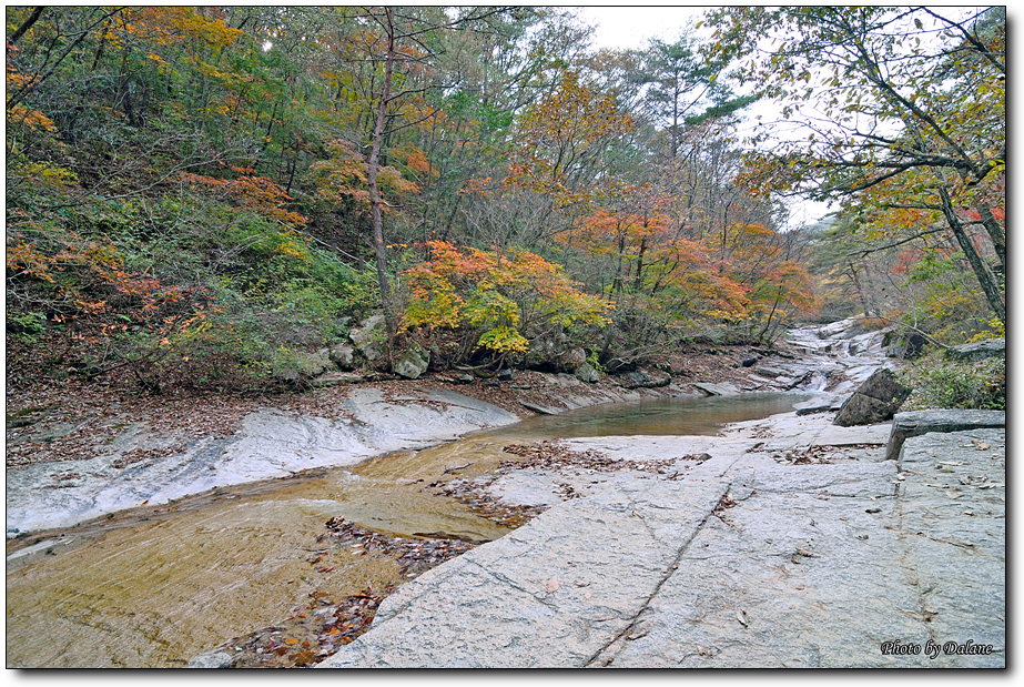 # 89. 너른 암반지대가 특징인 용추계곡 상류입니다. 수량이 조금 아쉽네요.